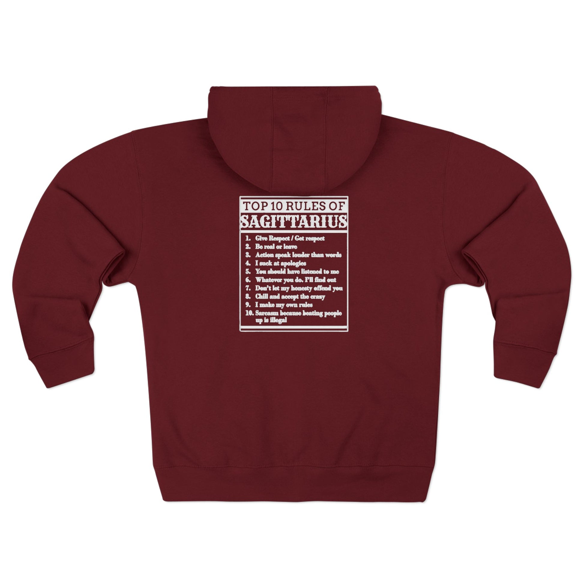 Sagittarius Zip Hoodie — "Top 10 Rules of Sagittarius" Astrology Zodiac Zip-Up